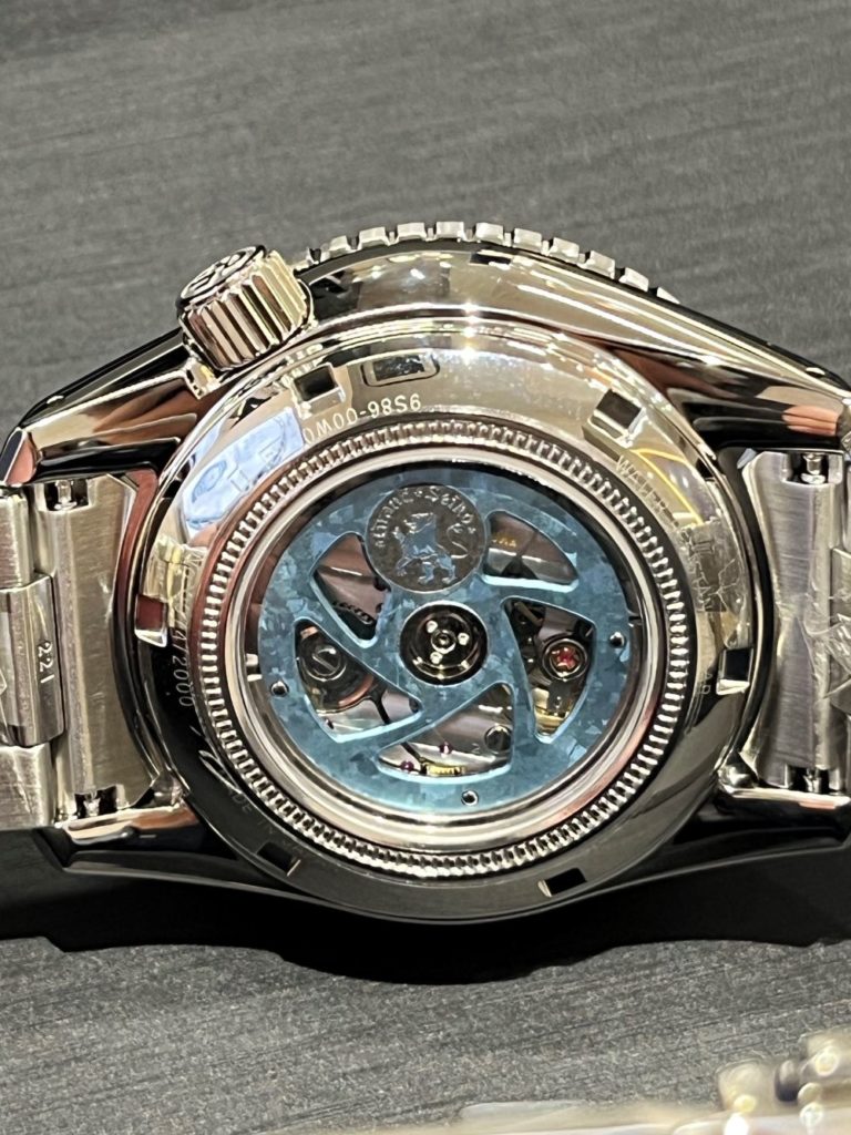 こちらは回転錘がグランドセイコーブルーとなっております。