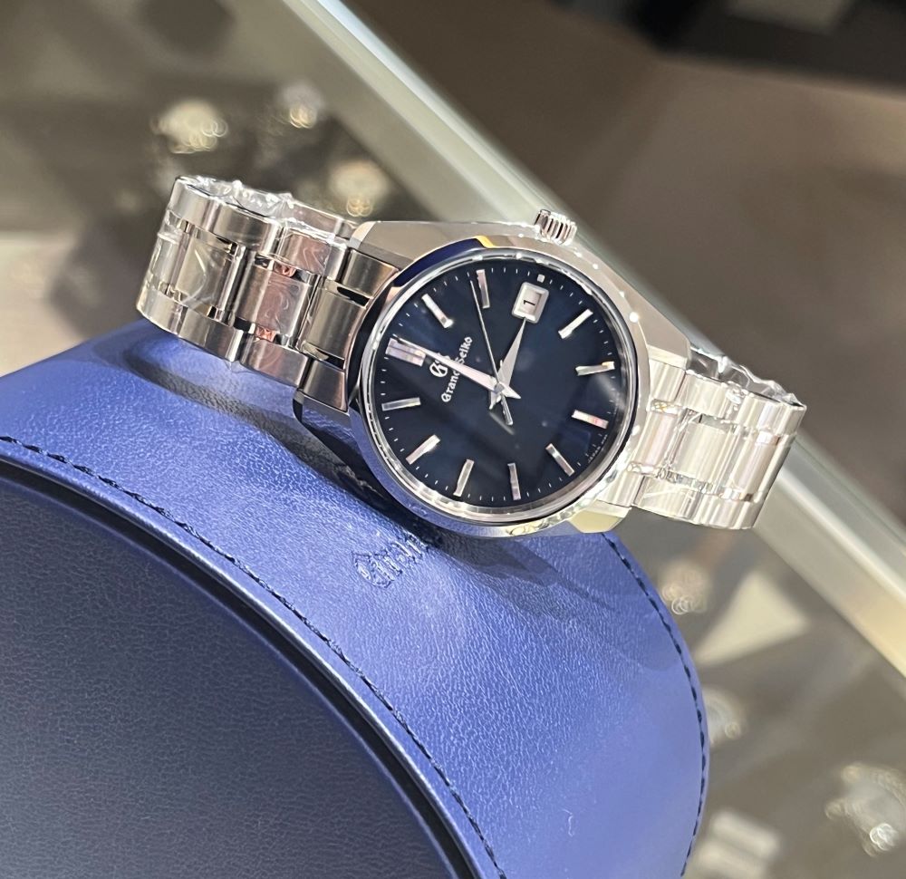 光と陰で様々な表情を見せるケースと、グランドセイコーならではの深いブルーが